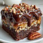 In a medium saucepan, melt the unsalted butter over medium heat. Stir in the brown sugar and heavy cream, then bring the mixture to a gentle simmer. Let it cook for about 4 to 5 minutes, stirring occasionally, until it thickens slightly. Remove from heat and stir in the vanilla extract, then fold in the shredded coconut and chopped pecans. This rich, gooey topping is what elevates this cake from everyday chocolate to an indulgent treat.