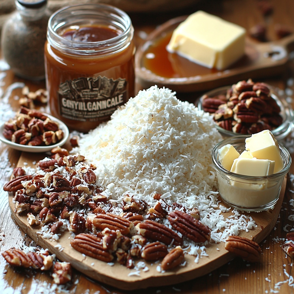 Gathering the right ingredients for this cake is a simple yet crucial step to achieving that perfect harmony of flavors and textures. Each element plays its part, from the rich cake base to the gooey, nutty topping that makes every slice a moment to savor.