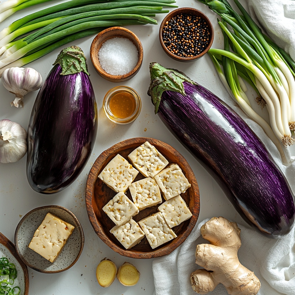 Fresh green onions sprinkled on top add a crisp pop of color and a lively crunch that contrasts delightfully with the silky tofu and tender eggplant. For an extra touch of heat and a visual spark, a few red chili flakes or a drizzle of chili oil can elevate the dish even further.