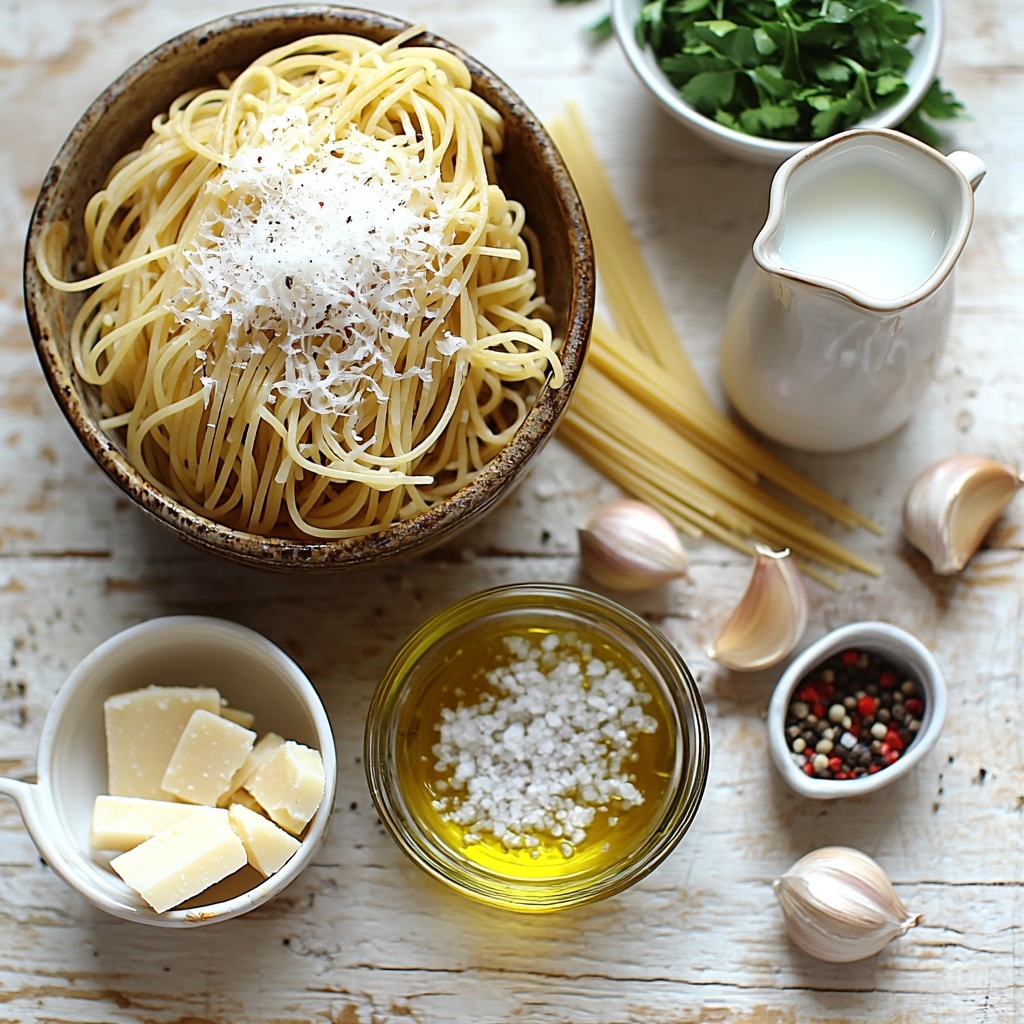 This One Pot Creamy Garlic Pasta is a quick and easy meal perfect for busy weeknights. It combines tender spaghetti cooked directly in a flavorful garlic-infused broth and milk mixture, finished with creamy Parmesan cheese and fresh parsley for a comforting, luscious dish that requires minimal cleanup.