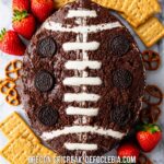- Serve: Present the decorated Oreo Cream Cheese Football Dip alongside graham crackers, pretzels, or fruit for dipping and enjoy!