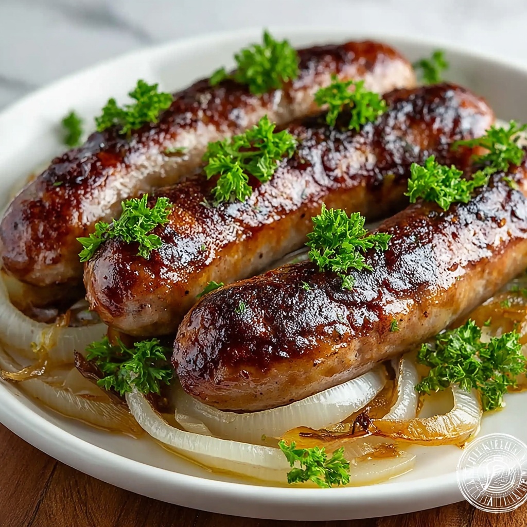 A sprinkling of fresh parsley not only adds a burst of vibrant green but also a lovely fresh note that balances the richness of the brats and onions. You can also try a few mustard seeds or a light drizzle of spicy mustard for an extra flavor punch.