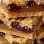 Delicious and easy-to-make Peanut Butter and Jelly Bars featuring a buttery peanut butter crust layered with sweet strawberry jam. Perfect for a nostalgic treat or a crowd-pleasing dessert, these bars combine the classic flavors of PB&J in a delightful baked form.