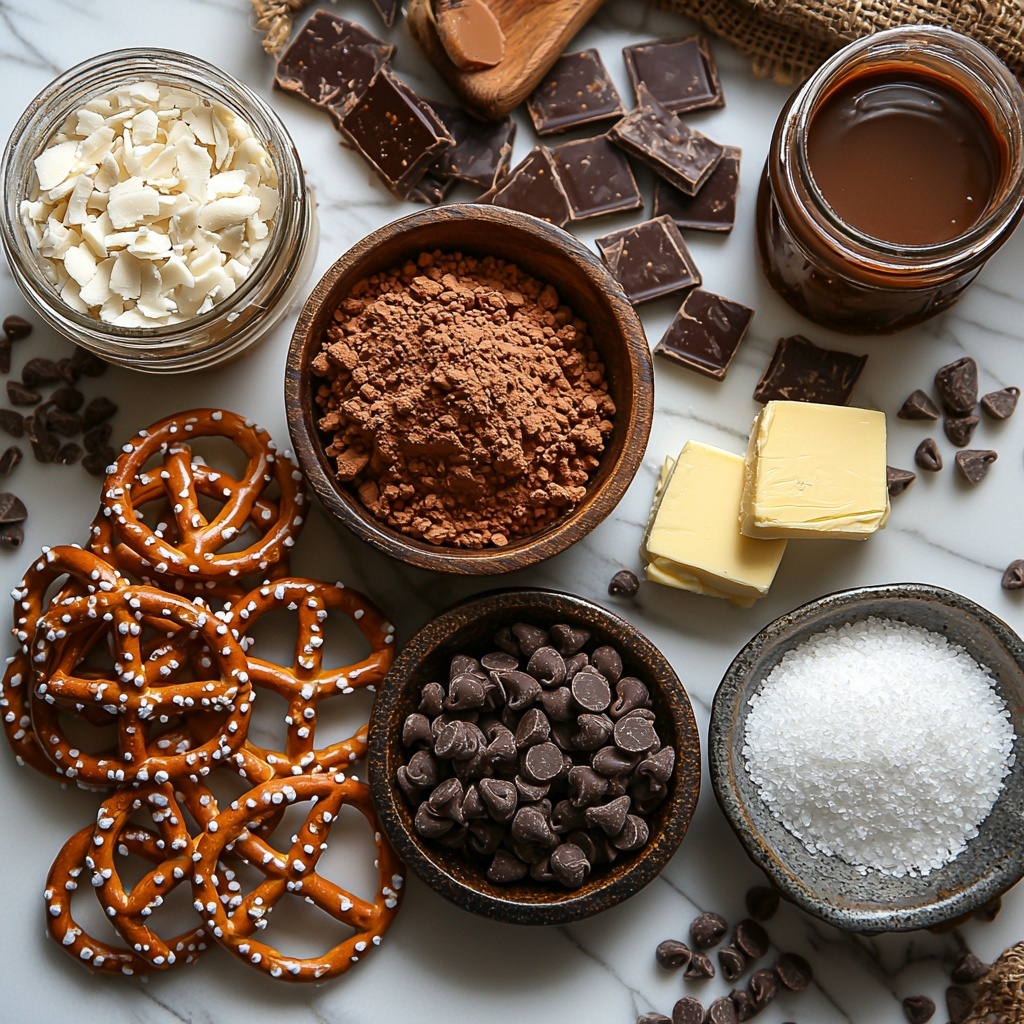 This recipe leans on simple, everyday ingredients that work harmoniously to create layers of texture and flavor you’ll adore. Each element plays a special role: the pretzels bring crunch and saltiness; the peanut butter and butter combine for ultra-smooth richness; and the chocolate chips add that velvety finishing touch.