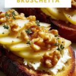 This bruschetta is a fantastic starter alongside a crisp green salad or a light soup, like a chilled cucumber or tomato basil. For a heartier spread, pair it with a charcuterie board featuring prosciutto, olives, and mild cheeses—the pear and walnut combination complements a variety of savory elements perfectly.