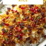 Persian Jeweled Rice, a classic Iranian dish, combines aromatic basmati rice with vibrant saffron-infused layers and a colorful medley of caramelized onions, sweet raisins, tart barberries or cranberries, crunchy almonds, and pistachios. This festive dish is steamed to perfection with a crispy golden crust, creating a beautiful and flavorful celebration-worthy entree.