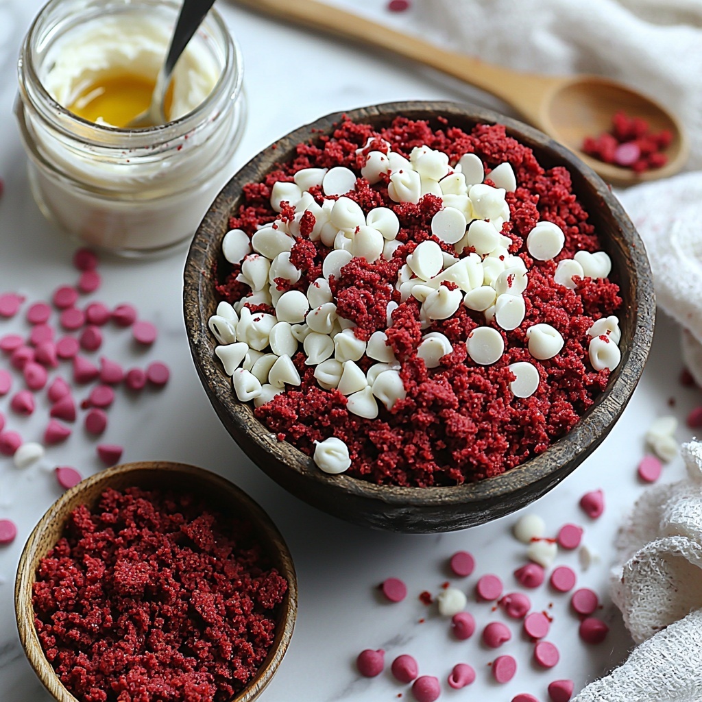 - Red velvet crumbs or sprinkles (optional, for garnish): Gives a festive, textured look and a hint of extra flavor on top.