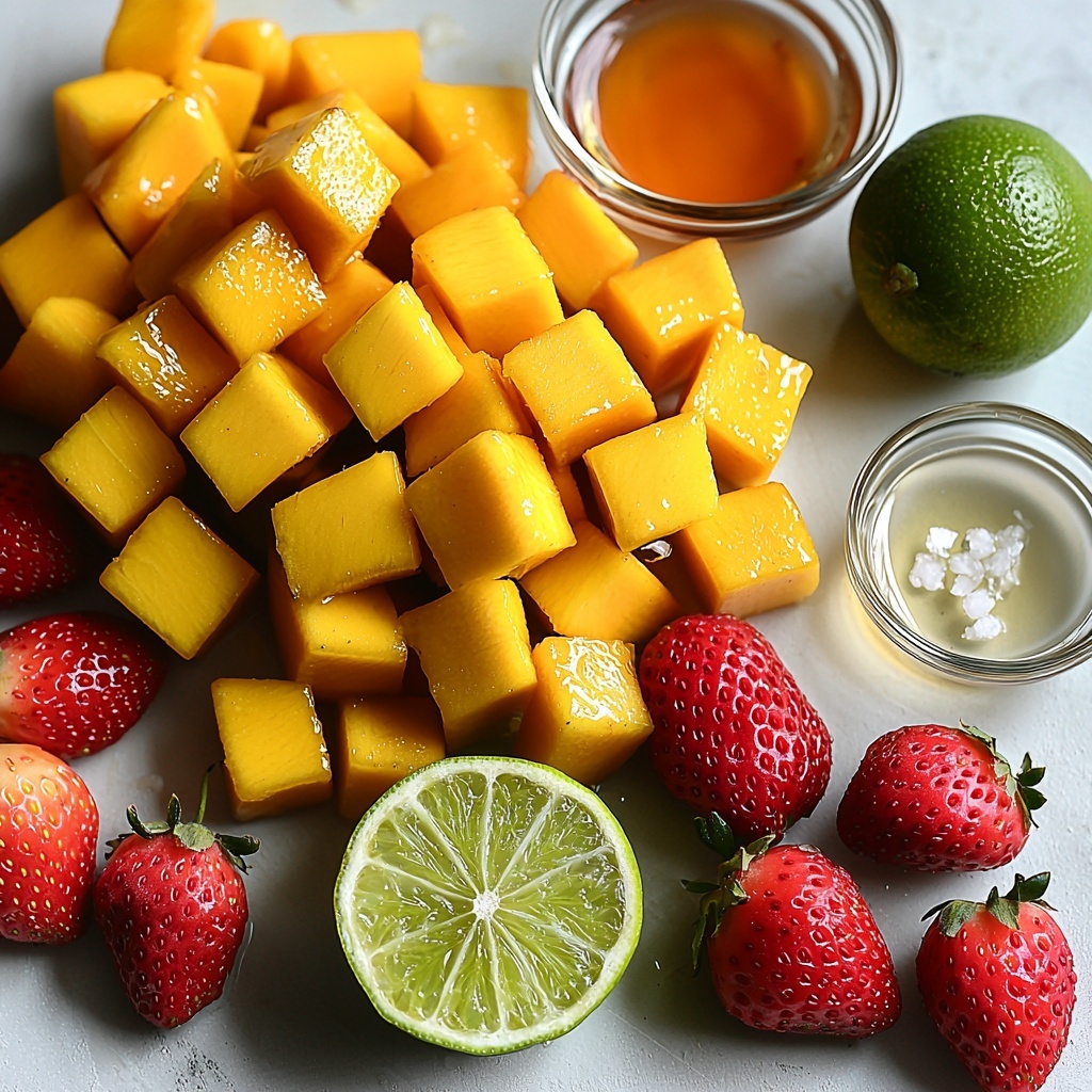 - 2 cups fresh strawberries: Full of bright color and a lovely tartness that perfectly complements the mangoes.