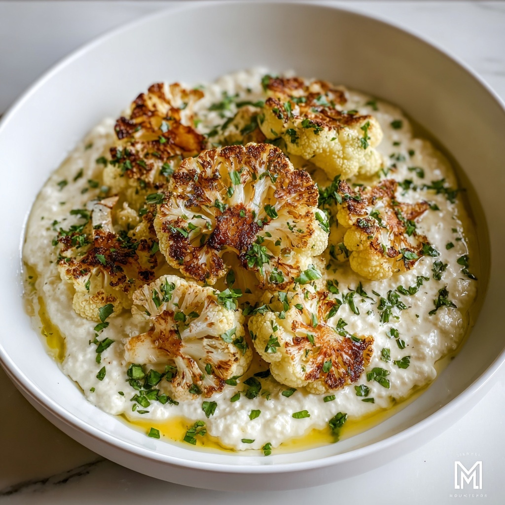 This creamy Roasted Cauliflower Soup combines tender roasted cauliflower with aromatic garlic, onions, and thyme, resulting in a comforting and flavorful dish. Enhanced with vegetable broth and optional heavy cream for richness, it’s perfect as a warming appetizer or light meal. Garnished with fresh chives, this soup highlights simple ingredients turned into a deliciously smooth and satisfying soup.