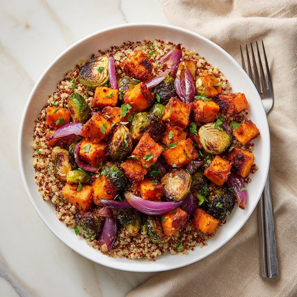 • 1 cup cooked quinoa: Offers a fluffy, protein-packed base that balances the roasted veggies.