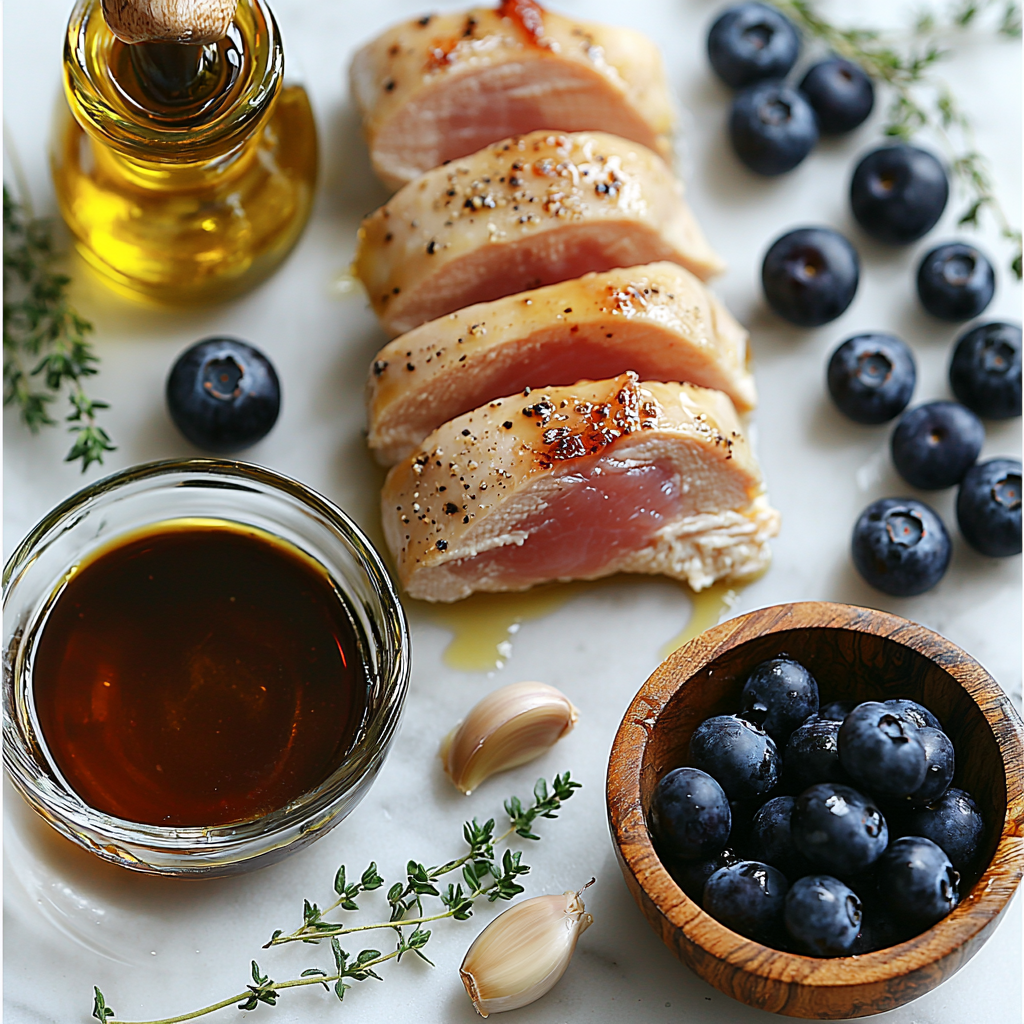 This Savory Blueberry Thyme Chicken for a Quick Dinner Delight Recipe calls for simple, pantry-friendly ingredients that each play a key role in building layers of flavor, from the silky honey to the tangy balsamic vinegar and the fresh pop of blueberries. Here’s everything you’ll want to have on hand before getting started.