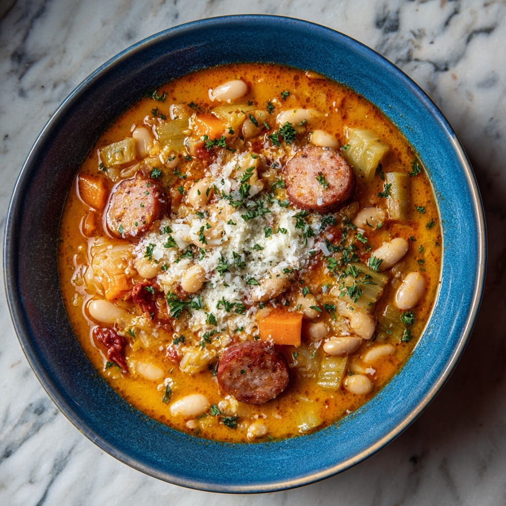 This hearty Sausage and Bean Soup is a comforting and flavorful dish packed with tender vegetables, savory chicken sausage, and creamy beans in a fragrant broth. Perfect for an easy weeknight meal, it combines Italian herbs and warming spices to create a delicious and satisfying soup.