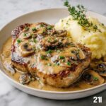 Smothered Pork Chops with Mushroom Gravy Recipe is begging to be served alongside creamy mashed potatoes, which soak up every bit of that luscious gravy. Another excellent choice is buttery egg noodles or fluffy rice to catch and carry the sauce. For a lighter option, garlic sautéed green beans or steamed broccoli balance the richness with their crisp textures and vibrant greens.