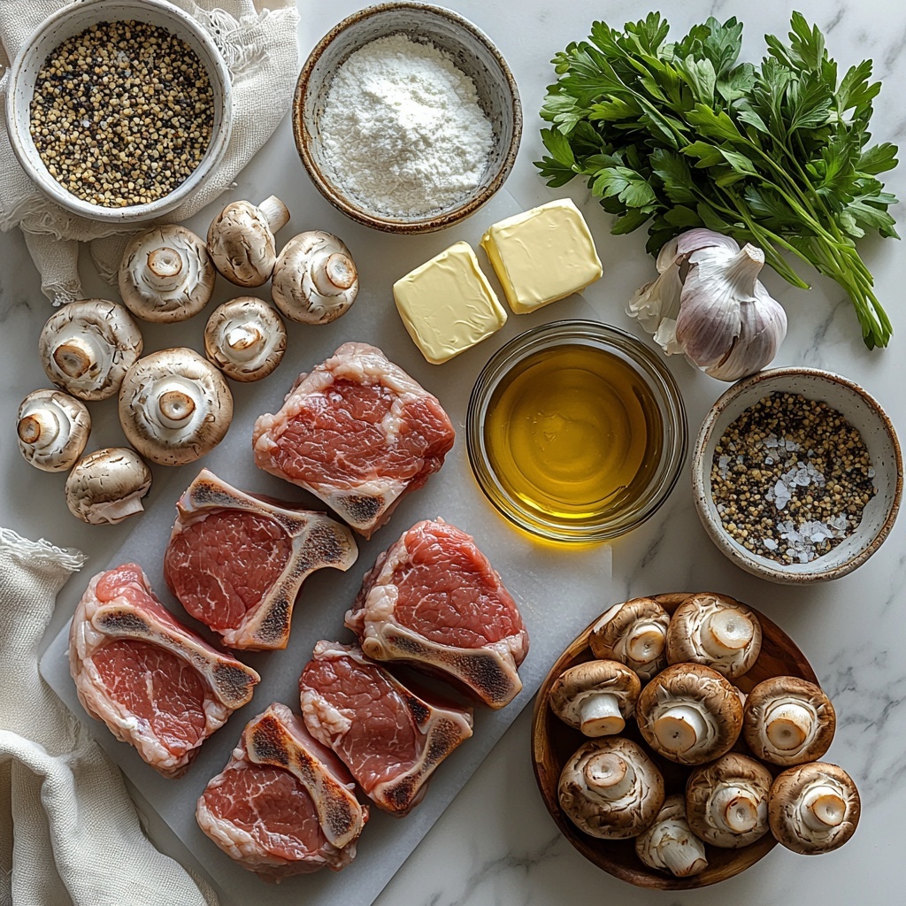 The magic of this Smothered Pork Chops with Mushroom Gravy Recipe lies in its straightforward, wholesome ingredients. Each one plays a key role in layering flavors and textures, from the earthy mushrooms that add depth to the creamy gravy that ties everything together. Let’s take a look at these essentials that make this dish a favorite.