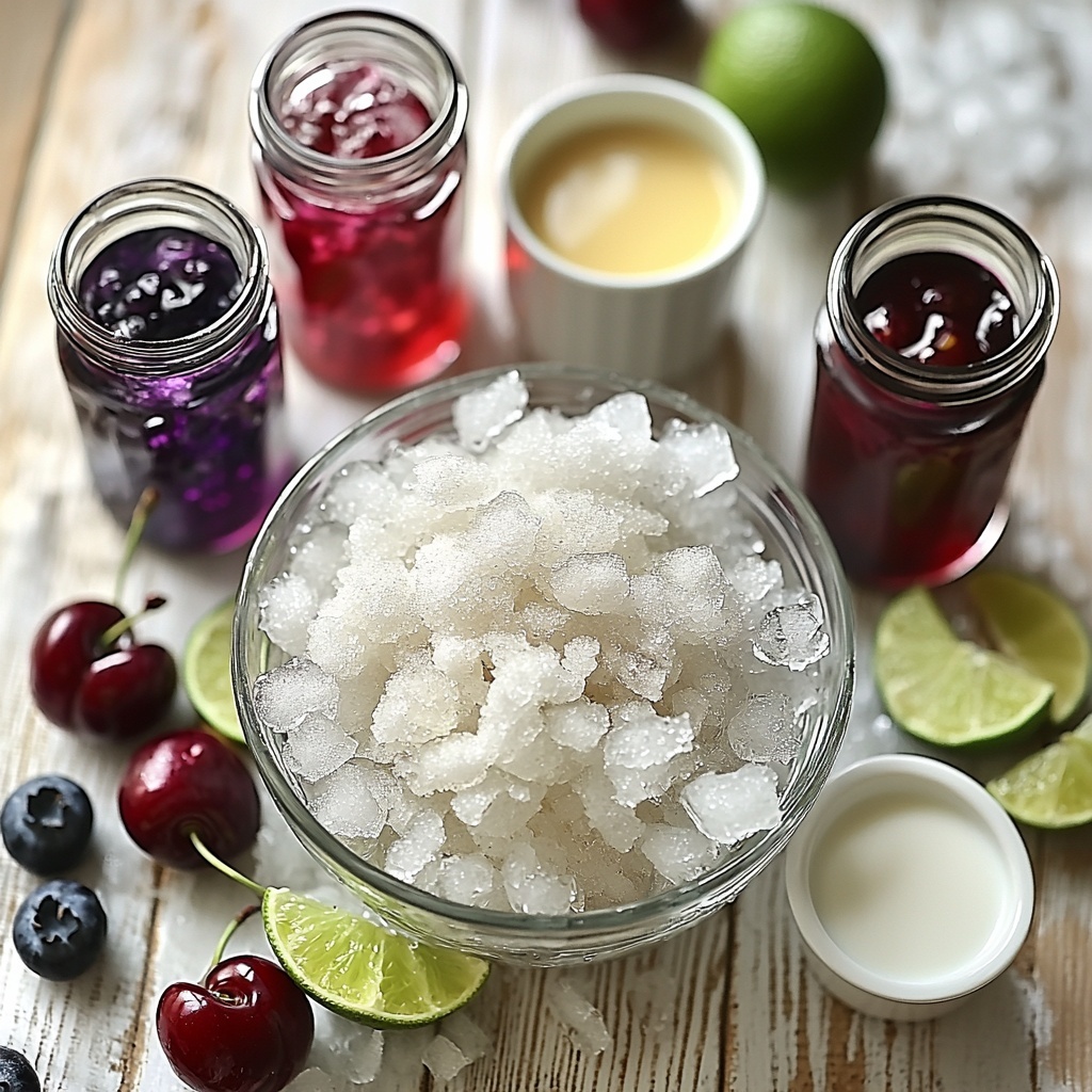 - 1 cup flavored syrup (e.g., cherry, blueberry, lime): Adds vibrant color and signature flavor to your snow cone.