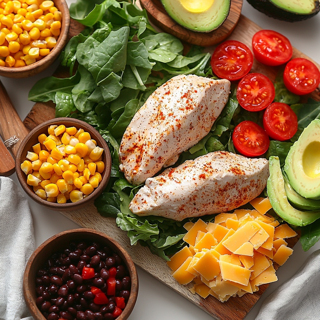 This Southwest Chicken Salad is a vibrant and flavorful meal combining grilled chicken seasoned with classic southwestern spices, fresh mixed greens, crisp vegetables, and a choice of ranch or zesty lime vinaigrette dressing. Ready in just 30 minutes, it’s a perfect nutritious lunch or dinner bursting with bold tastes and textures.