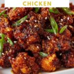 - Garnish and Serve: Transfer the glazed chicken to a serving plate. Sprinkle generously with finely chopped green onions and sesame seeds for a fresh, crunchy finish. Serve immediately while hot and crispy.