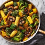 - Add remaining vegetables: Add mushrooms, red bell pepper, and baby corn to the skillet and cook for an additional 5 minutes, stirring occasionally.