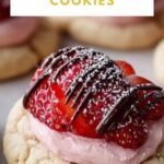 These cookies are stunning on their own, but you can easily elevate them by adding a light dusting of powdered sugar or a handful of finely shredded white chocolate on top of the kisses. Fresh strawberry slices nearby also make for a beautiful, fresh garnish that complements the flavors perfectly.