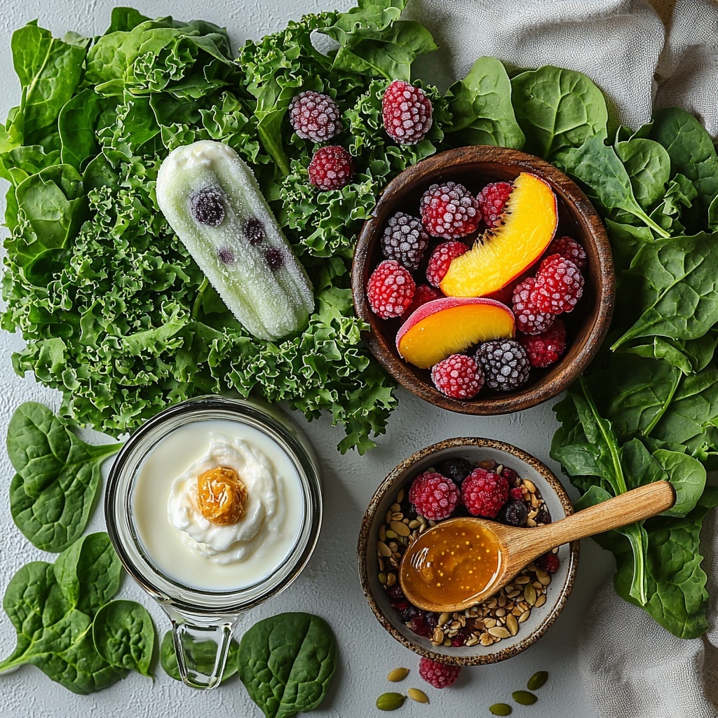 - Gather Ingredients: Collect all the required ingredients including milk, baby greens, frozen banana, frozen fruit, Greek yogurt, nut butter or seeds, and your preferred sweetener.