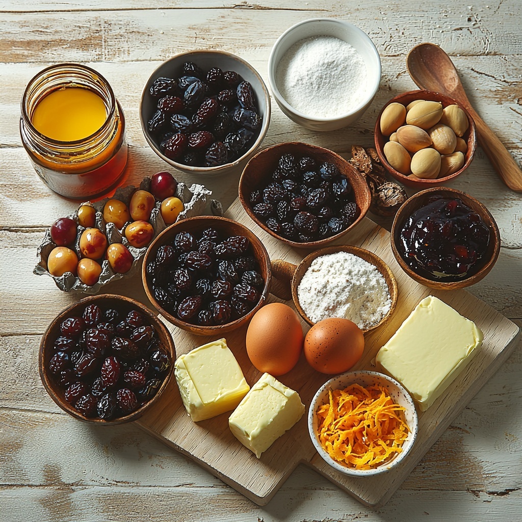 Simple yet essential, each ingredient in this Traditional Christmas Cake with Dried Fruits, Nuts, and White Chocolate Decorations Recipe plays a crucial role in creating its unforgettable flavor, texture, and festive color. Let’s dive into what you’ll need to craft this seasonal masterpiece.