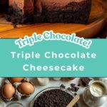 Indulge in a decadent Triple Chocolate Cheesecake featuring a rich Oreo crust, smooth chocolate cream cheese filling, silky chocolate ganache topping, and decadent chocolate whipped cream. This impressive dessert balances semi-sweet, milk, and cocoa chocolates for the ultimate chocolate lover’s experience, perfect for special occasions and large gatherings.