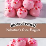 These Valentine’s Oreo Truffles are a delightful no-bake treat perfect for celebrating love. Combining crushed golden Oreo cookies with creamy cream cheese and a touch of pink food coloring, these bite-sized truffles are coated in smooth vanilla candy coating and topped with festive Valentine’s sprinkles. Easy to prepare and irresistibly sweet, they make an ideal dessert for parties, gifts, or a fun homemade treat.