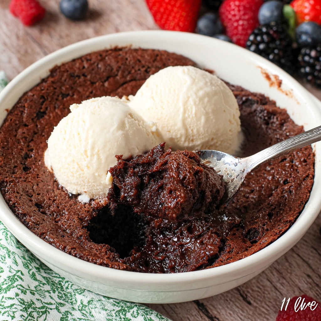 11. Rest and serve: Allow the brownie pudding to rest for 5 to 10 minutes before serving. Scoop into bowls and top with ice cream, fresh berries, or a drizzle of heavy cream.